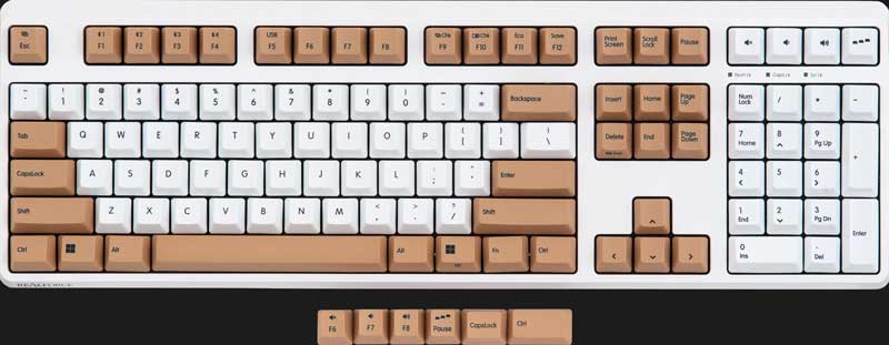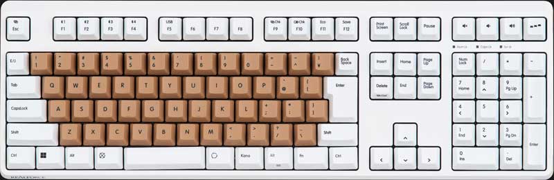 昇華印刷方式により、キーキャップにインクを深く浸透させるため、10年以上使用してもキーキャップの文字が消えません。また、高耐久の PBT (ポリブチレンテレフタレート)素材により長年使用してもキーキャップの表面が摩耗してツルツルになりにくい高級素材を採用しています。