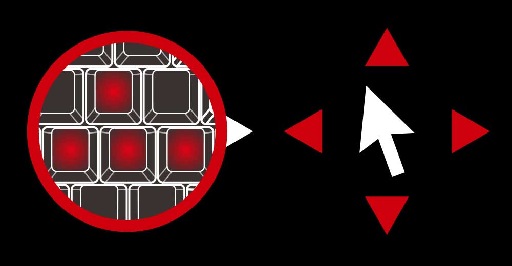 すべてのキーを同時に押しても認識される全キー同時押し機能※とともに、押された順序どおりにすべて入力される『N キーロールオーバー』対応です。高速入力時に同時押しの様な入力をしてもすべて正確に入力され、プロのオペレーターやゲーマーでも安心してご使用いただけます。
